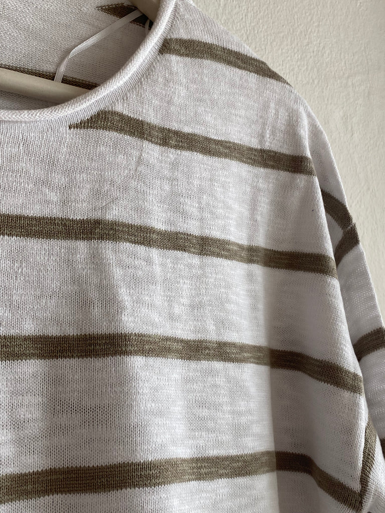 Relaxed fit, knit material, stripe detailing, long sleeve, crew neckline