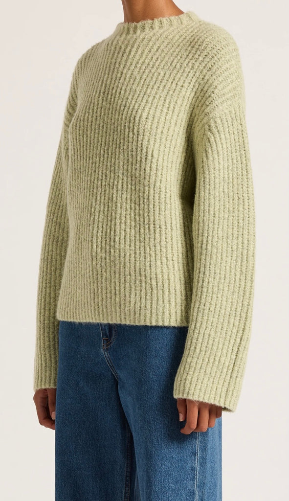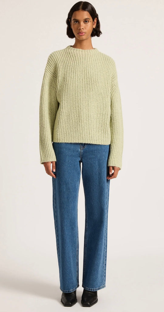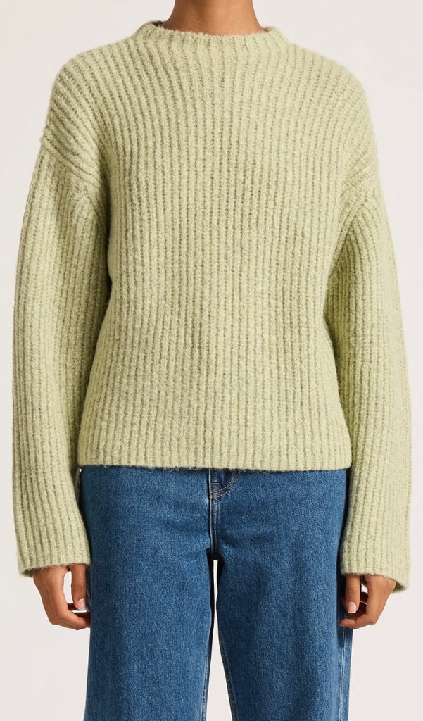 The Parker Knit is made from a soft midweight yarn with subtle fluffy texture. The silhouette is relaxed with a high neck and length finishing at the hips. Features include marled yarn effect and rib finish throughout.